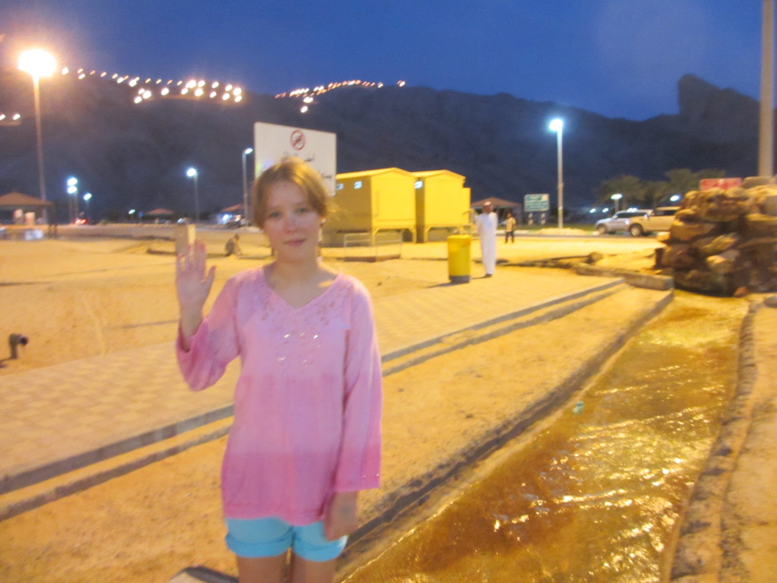 We went to Green Mubuzzarah the other weekend. It's a park near Al Ain which is at the foot of the mountain, Jebel Hefeet, and where there are hot springs. I like hot water of all sorts - tea, hot baths, steam rooms, jacuzzis. I am not sure why. Anyway, this discovery was great. We only put our feet in, but apparently you can go in up to your neck, and there is also an indoor spa/pool area. We went to a little girl's birthday party.